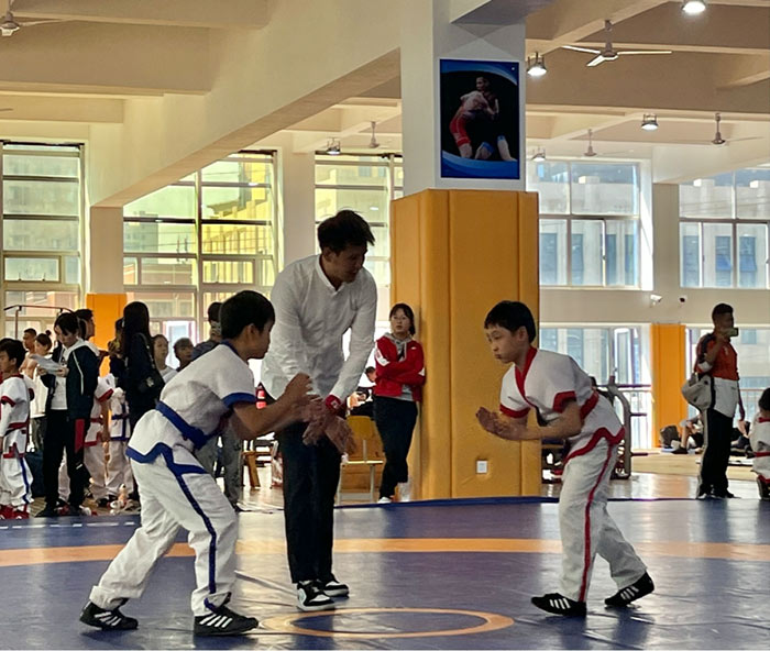 中國(guó)式摔跤是我國(guó)古老的體育項(xiàng)目之一,古代稱為角力、角抵、相撲、爭(zhēng)跤等。中國(guó)式摔跤的規(guī)則簡(jiǎn)單明了,只許站著摔,摔倒后就立即停止,然后重新開(kāi)始比賽,每場(chǎng)比賽不僅耗時(shí)短,而且觀賞性強(qiáng),具有廣泛的群眾基礎(chǔ)。